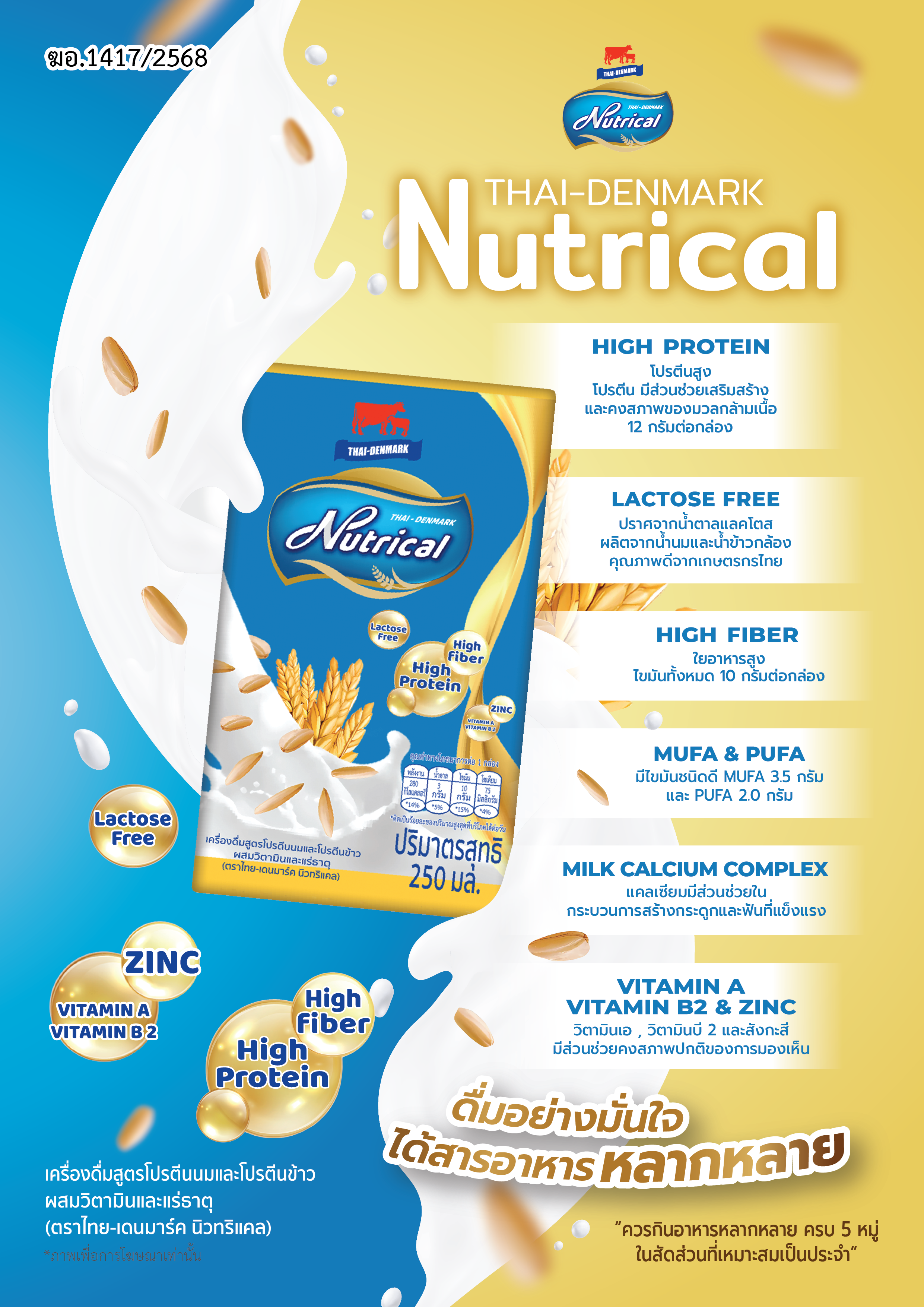 เครื่องดื่มสูตรโปรตีนนมและโปรตีนข้าว ผสมวิตามินและแร่ธาตุ ตราไทย-เดนมาร์ค นิวทริแคล